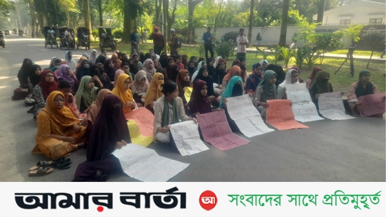 রাজশাহী বিশ্ববিদ্যালয়ের সুইমিং পুলে ডুবে সমাজবিজ্ঞান বিভাগের শিক্ষার্থী সায়মা হোসাইনের মৃত্যুর প্রতিবাদে উপাচার্যের বাসভবনসংলগ্ন সড়কে বিক্ষোভ করছেন শিক্ষার্থীরা।