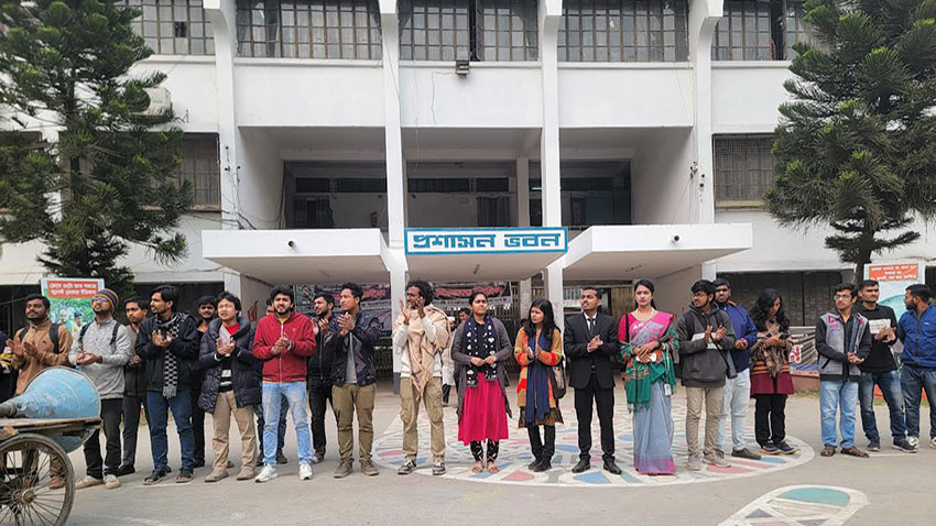 রোববার (২১ ডিসেম্বর) দুপুর দেড়টায় এই বিক্ষোভ মিছিল করেন তারা। মিছিলটি বটতলা থেকে শুরু হয়ে ডায়না চত্বর প্রদক্ষিণ করে প্রশাসন ভবনের সামনে এসে সমাবেশে মিলিত হয়।