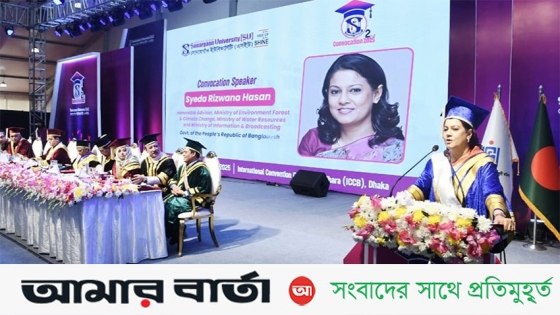 ডিগ্রি অর্জনের মূল লক্ষ্য কেবল ভালো বেতন বা সুযোগ–সুবিধা নয় বলে মন্তব্য করেছেন পরিবেশ, বন ও জলবায়ু পরিবর্তন; পানি সম্পদ এবং তথ্য ও সম্প্রচার মন্ত্রণালয়ের উপদেষ্টা সৈয়দা রিজওয়ানা হাসান। তিনি বলেছেন, পরিবার, সমাজ, দেশ এবং প্রকৃতির প্রতি দায়িত্ববোধ নিয়ে কর্মজীবনে প্রবেশ করাই হওয়া উচিত নতুন প্রজন্মের প্রধান অঙ্গীকার। পরিবর্তন কখনো স্বয়ংক্রিয়ভাবে আসে না— মূল্যবোধ, দায়িত্ববোধ ও ব্যক্তিগত আচরণের পরিবর্তনের মাধ্যমেই একটি দেশ এগিয়ে যায়।