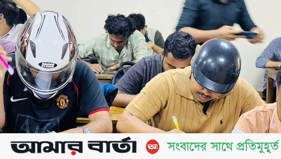 নিরাপত্তার শঙ্কায় হেলমেট পরে পরিক্ষার হলে জবি শিক্ষার্থীরা