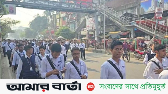 প্রস্তাবিত ও বাস্তবায়নাধীন ‘ঢাকা সেন্ট্রাল ইউনিভার্সিটি’ এর স্কুলিং মডেল বাতিলের দাবিতে সায়েন্সল্যাব মোড় অবরোধ করেছেন ঢাকা কলেজের উচ্চমাধ্যমিক শ্রেণির শিক্ষার্থীরা।