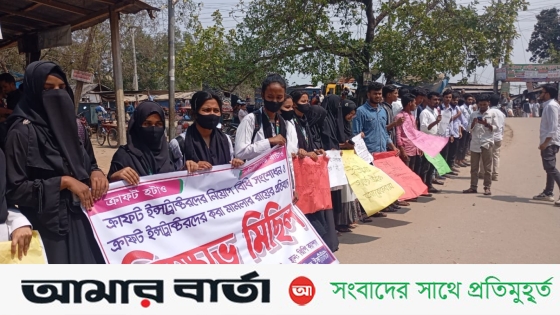 ক্রাফট ইন্সট্রাক্টরদের নিয়োগের বিধি সংশোধনের দাবি ও ইন্সট্রাক্টরদের করা মামলার রায়ের প্রতিবাদে সারা দেশে ন্যায় ঠাকুরগাঁওয়ের রাণীশংকৈলে বিক্ষোভ মিছিল ও মানববন্ধন করেছে পলিটেকনিক ইন্সটিটিউটের শিক্ষার্থীরা। শনিবার (২২ মার্চ) বেলা ১২টার দিকে রাণীশংকৈল আইডিয়াল পলিটেকনিক ইনস্টিটিউটের শিক্ষার্থীরা বিক্ষোভ মিছিল বের করে। মিছিলটি পৌর শহরের প্রধান সড়ক প্রদক্ষিণ করে পরে উপজেলা পরিষদের মূল ফটকের সামনে মানববন্ধন করে শিক্ষার্থীরা