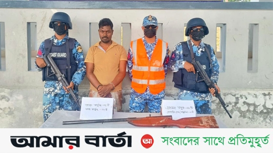 খুলনার কয়রায় কোস্ট গার্ড ও নৌ বাহিনীর যৌথ অভিযানে সুন্দরবনের দুর্ধর্ষ ডাকাত ছোটন বাহিনীর ১ সহযোগীকে অস্ত্র ও গোলাবারুদসহ আটক।