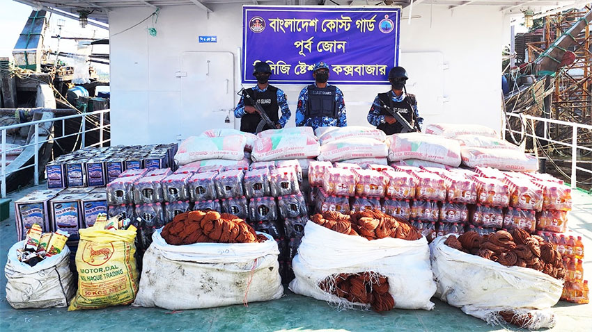 তিনি বলেন, গোপন সংবাদের ভিত্তিতে জানা যায়, একটি অসাধু চক্র বাংলাদেশী পণ্যের বিনিময়ে ইয়াবা-মদসহ অন্যান্য মাদকদ্রব্য মায়ানমার হতে বাংলাদেশে পাচার করবে। প্রাপ্ত তথ্যের ভিত্তিতে গত ১৪ অক্টোবর ২০২৫ তারিখ মঙ্গলবার বিকাল ৫ টায় কোস্ট গার্ড স্টেশন কক্সবাজার কর্তৃক মহেশখালী সদর থানাধীন বড়দিয়া সংলগ্ন লবণের ঘোনায় একটি বিশেষ অভিযান পরিচালনা করা হয়। অভিযান চলাকালীন উক্ত এলাকার লবণের ঘোনায় তল্লাশি চালিয়ে অবৈধভাবে শুল্ক-কর ফাঁকি দিয়ে মায়ানমারে পাচারের উদ্দেশ্যে প্রায় ১৩ লক্ষ ৬৫ হাজার টাকা মূল্যের ৫০০ বস্তা সিমেন্ট, ২৩,০৮৮ পিস এনার্জি ড্রিংক্স, ২৮৪ গ্যালন আলকাতরা, ৫০০ বোতল জিও ভিটা সিরাপ এবং ১৩৫ কেজি নাইলন সুতা জব্দ করা হয়। এসময় কোস্ট গার্ডের উপস্থিতি টের পেয়ে পাচারকারীরা পালিয়ে যাওয়ায় কাউকে আটক করা সম্ভব হয়নি।