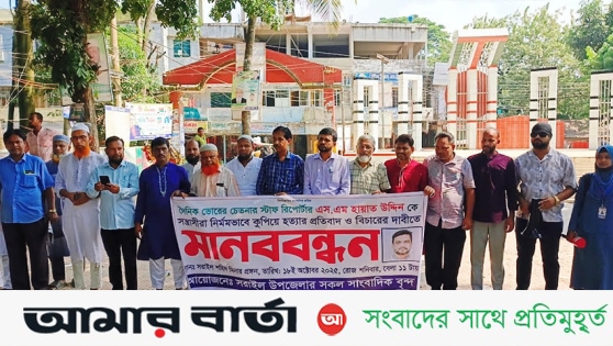 দৈনিক ভোরের চেতনার বাগেরহাট জেলার স্টাফ রিপোর্টার সাংবাদিক এ. এস. এম. হায়াত উদ্দীনকে কুপিয়ে হত্যার প্রতিবাদ ও বিচার দাবিতে ব্রাহ্মণবাড়িয়ার সরাইলে মানববন্ধন অনুষ্ঠিত হয়েছে।