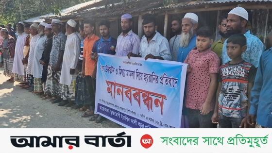 চাঁপাইনবাবগঞ্জের গোমস্তাপুরে কবিরাজের দেয়া তথ্য অনুযায়ী মামলার আসামি করে হয়রানির প্রতিবাদে মানববন্ধন করেছে গ্রামবাসী। শুক্রবার (২৪ অক্টোবর) দুপুরে জুমার নামাজের পর উপজেলার রহনপুর ইউনিয়নের আসানপুর গ্রামে এই মানববন্ধনের আয়োজন করে ভুক্তভোগী পরিবার ও গ্রামবাসী।