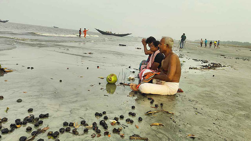বঙ্গোপসাগরের লোনাজলে পূণ্য স্নানের মধ্য দিয়ে সুন্দরবনের দুবলারচর আলোরকোলে সনাতন ধর্মাবলম্বীদের তিন দিনব্যাপী ঐতিহাসিক রাস