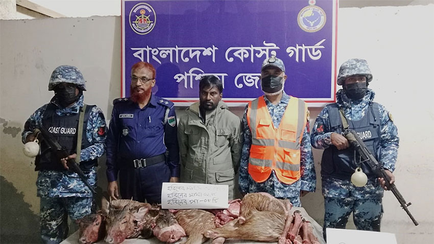 মোংলায় কোস্ট গার্ড–পুলিশের অভিযানে হরিণের মাংসসহ শিকারি আটক