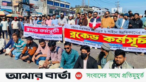 চট্টগ্রামের সাতকানিয়ায় চট্টগ্রাম-কক্সবাজার মহাসড়ক ৬ লেনের দাবিতে ব্লকেড কর্মসূচি পালন করছে স্থানীয়রা।