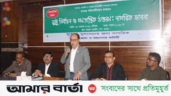 রোববার (৩০ নভেম্বর) দুপুরে রংপুর নগরীর একটি হোটেলের কনফারেন্স রুমে অনুষ্ঠিত ‘সুষ্ঠু নির্বাচন ও গণতান্ত্রিক উত্তরণ: নাগরিক ভাবনা’ শীর্ষক গোল টেবিল বৈঠকে সুশীল ও নাগরিক সমাজের প্রতিনিধিরা এসব কথা বলেন। সুশাসনের জন্য নাগরিক-সুজন রংপুর জেলা ও মহানগর কমিটি আয়োজিত এ বৈঠকে ছাত্র-শিক্ষক, আইনজীবী-সাংবাদিক, সাংস্কৃতিককর্মী, জনপ্রতিনিধিসহ পেশাজীবী সংগঠনের প্রতিনিধিরা অংশ নেন।
