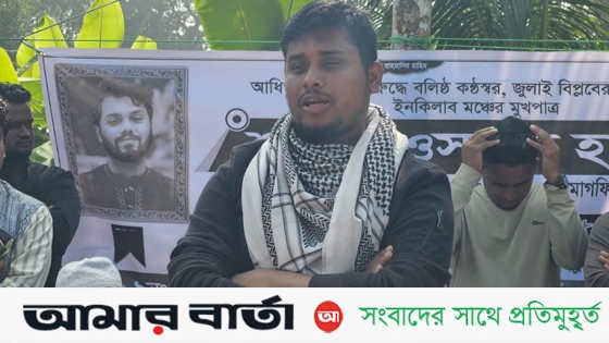 হাসনাত বলেন, আমরা কখনোই ওসমান হাদির মতো হতে পারব না। তিনি মুড়ি-বাতাসা নিয়ে তার নির্বাচনী প্রচারণা চালিয়েছেন। তিনি চেয়েছেন বাংলাদেশে যেন ইনসাফ প্রতিষ্ঠিত হয়, চাঁদাবাজ-দুর্নীতি বন্ধ হয়, মানুষ তার ন্যায্য অধিকার থেকে যেন বঞ্চিত না হয়। আজকে গ্রামে গ্রামে শহীদ হাদির জন্য দোয়া করছেন মা বোনেরা ও বৃদ্ধ বাবারা। শহীদ ওসমান হাদি রাষ্ট্রে যে ইনসাফ প্রতিষ্ঠা করতে চেয়েছেন সেই ইনসাফ প্রতিষ্ঠার দায়িত্ব আমরা নিলাম। আমরা শহীদ হাদীর হত্যার বিচার এই দেশেই নিশ্চিত করেই ঘরে ফিরে যাব। পরে শহীদ ওসমান হাদির আত্মার রুহের মাগফেরাত কামনায় দোয়া-মোনাজাত করা হয়।
