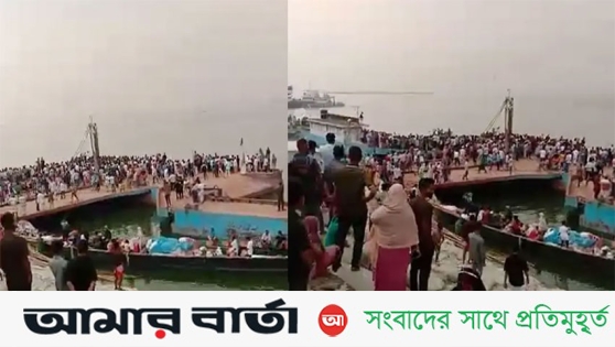 দৌলতদিয়ায় নদীতে পড়ে গেছে যাত্রীবাহী বাস, বহু হতাহতের শঙ্কা