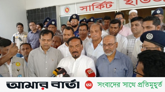 বরিশাল সার্কিট হাউজে সাংবাদিকদের সঙ্গে কথা বলেন জাতীয় সংসদের স্পিকার