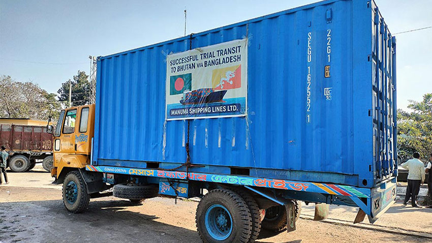 ২০২৩ সালের ২২ মার্চ বাংলাদেশ ও ভুটানের মধ্যে একটি প্রটোকল চুক্তি সই হয়। পরের বছর এপ্রিলে ভুটানে দুই দেশের বাণিজ্যসচিব পর্যায়ের বৈঠকে বাংলাদেশের সমুদ্রবন্দর ও সড়কপথ এবং ভারতের সড়কপথ ব্যবহার করে ভুটানে পরীক্ষামূলকভাবে দুটি ট্রানশিপমেন্টের চালান পাঠানোর সিদ্ধান্ত হয়।