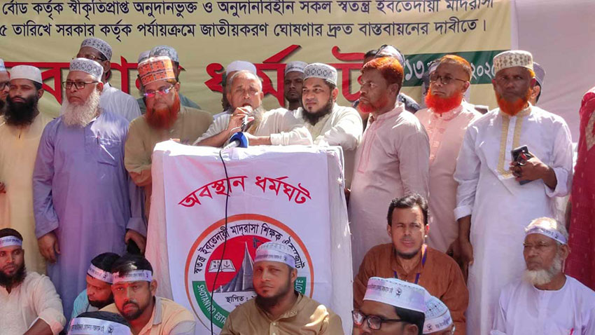 অনুদানভুক্ত ও অনুদানবিহীন সব স্বতন্ত্র ইবতেদায়ী মাদ্রাসা চলতি বছরের ২৮ জানুয়ারি সরকারের ঘোষিত পর্যায়ক্রমে জাতীয়করণের ঘোষণার দ্রুত বাস্তবায়নসহ মোট পাঁচটি দাবি জানিয়েছে স্বতন্ত্র ইবতেদায়ী মাদ্রাসা শিক্ষক ঐক্য জোট আন্দোলন বাস্তবায়ন কমিটি। দাবিগুলো মঙ্গলবার (২১ অক্টোবর) বিকেল ৫টার মধ্যে পূরণ না করা হলে ২২ অক্টোবর (বুধবার) দেশের সব স্বতন্ত্র ইবতেদায়ী মাদ্রাসা শিক্ষকদের নিয়ে শিক্ষা মন্ত্রণালয় অভিমুখে পদযাত্রা করবে।