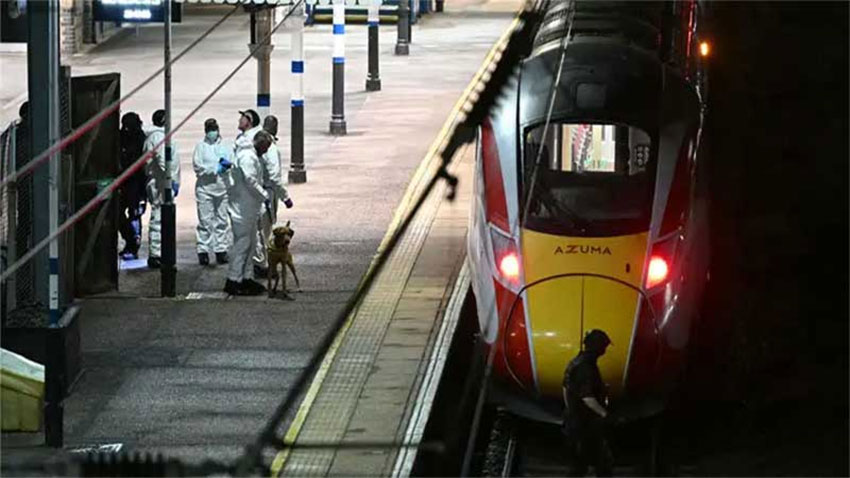 লন্ডন নর্থ ইস্টার্ন রেলওয়ে নিশ্চিত করেছে যে ঘটনাটি তাদের এক ট্রেনে ঘটেছে। বর্তমানে হান্টিংডন স্টেশনে জরুরি কাজ চলায় সব রেললাইন বন্ধ রাখা হয়েছে। - সূত্র: আল-জাজিরা