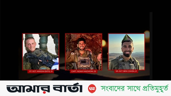হিজবুল্লাহর সঙ্গে লড়াইয়ে নিহত তিন সেনার নাম প্রকাশ করেছে ইসরায়েল। তাঁরা হলেন—ক্যাপ্টেন নোয়াম মাদমোনি, স্টাফ সার্জেন্ট মাক্সিম এনতিস ও স্টাফ সার্জেন্ট বেন কোহেন