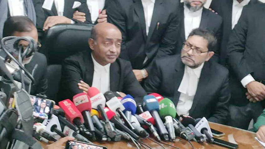বৃহস্পতিবার সুপ্রিম কোর্টে নিজ কার্যালয়ে সংবাদ সম্মেলনে অ্যাটর্নি জেনারেল মো. আসাদুজ্জামান। ছবি- সংগৃহীত
