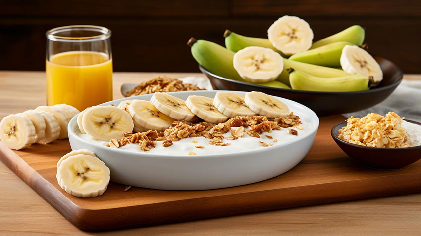 কলায় তিনটি প্রাকৃতিক শর্করা থাকে- গ্লুকোজ, ফ্রুক্টোজ এবং সুক্রোজ, যা শক্তি স্থিতিশীল এবং টেকসই করে। সকালে প্রথমেই একটি কলা খেলে বিপাক প্রক্রিয়া শুরু হয় এবং প্রক্রিয়াজাত নাস্তার মতো শরীরের কোনো ক্ষতি করে না।
