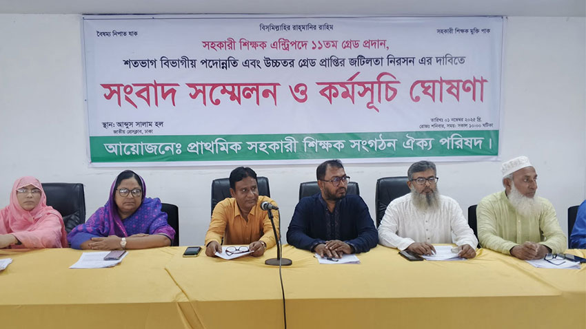 সংবাদ সম্মেলনে বাংলাদেশ প্রাথমিক সহকারী শিক্ষক সমাজের সভাপতি শাহিনুর আল আমীন বলেন, সারাদেশে প্রায় তিন লাখ ৮০ হাজার সহকারী শিক্ষক নিষ্ঠা ও আন্তরিকতার সঙ্গে প্রাথমিক শিক্ষার মানোন্নয়নে কাজ করলেও তারা দীর্ঘদিন ধরে আর্থিক ও মর্যাদাগত বৈষম্যের শিকার হয়ে আসছেন। বর্তমানে একজন সহকারী শিক্ষক ১৩তম গ্রেডে মাত্র ১১ হাজার টাকা বেতন পান, যা সর্বসাকুল্যে ১৭ হাজার ৬৫০ টাকা। দ্রব্যমূল্যের ঊর্ধ্বগতির এই সময়ে এই বেতন অপ্রতুল ও অমানবিক।