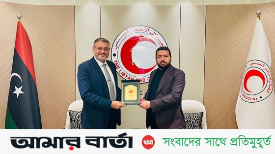 লিবিয়ান রেড ক্রিসেন্ট সোসাইটির সেক্রেটারি জেনারেল মারায়ী আল-দারসির সঙ্গে লিবিয়ায় নিযুক্ত বাংলাদেশের রাষ্ট্রদূত মেজর জেনারেল আবুল হাসনাত মুহাম্মদ খায়রুল বাশার সৌজন্য সাক্ষাৎ করেছেন।