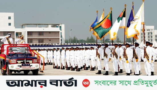 বাংলাদেশ নৌবাহিনীর বি/২০২৫ ব্যাচের নবীন নাবিকদের ২২ সপ্তাহব্যাপী বুটক্যাম্প প্রশিক্ষণের সফল সমাপ্তি উপলক্ষে অনুষ্ঠিত হলো বর্ণাঢ্য শিক্ষা সমাপনী কুচকাওয়াজ। সোমবার (২৪ নভেম্বর ২০২৫) পটুয়াখালীর বানৌজা শের-ই-বাংলা প্যারেড গ্রাউন্ডে আয়োজিত এ জমকালো অনুষ্ঠানে প্রধান অতিথি হিসেবে উপস্থিত ছিলেন বাংলাদেশ নৌবাহিনী প্রধান এডমিরাল এম নাজমুল হাসান। তিনি প্যারেড পরিদর্শন ও সালাম গ্রহণ করেন এবং পরে প্রশিক্ষণে কৃতিত্ব অর্জনকারী নবীন নাবিকদের মধ্যে পুরস্কার প্রদান করেন।