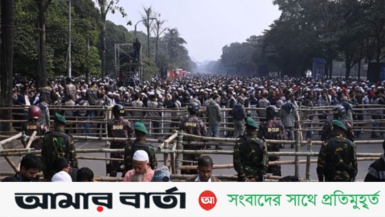 মানিক মিয়া এভিনিউয়ের পশ্চিম প্রান্ত মিরপুর রোডের দিক থেকে প্রবেশের পথ বন্ধ করে দেওয়া হয়েছে। পশ্চিম রাজাবাজার ঘুরে প্রবেশ করছেন মুসল্লিরা। এই পথে ৫ স্তরের নিরাপত্তা ব্যবস্থা দেখা গেছে। এসব স্তরে রয়েছে পুলিশ, র্যাব, বিজিবি ও সেনাবাহিনীর সদস্যরা। তারপরও ভিড় সামাল দিতে বেশ বেগ পেতে দেখা গেছে।