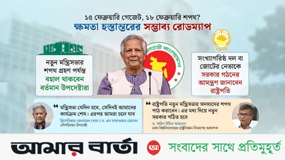 সেই প্রসেস হতে তো নির্বাচনের পরে আরও দুই-তিন দিনও সময় লাগতে পারে। সেটা যদি সোম-মঙ্গলবার হয়, তার মানে রবি-সোমবারও কি আপনারা অফিস করবেন– এ প্রশ্নের জবাবে তিনি বলেন, ‘রোব-সোমবার যদি আমাকে কেউ চলে যেতে না বলে, তাহলে অবশ্যই অফিস করব।’ ১৫ ফেব্রুয়ারি নবনির্বাচিত সংসদ সদস্যদের গেজেট হতে পারে বলেও ধারণা দেন নৌপরিবহন উপদেষ্টা।