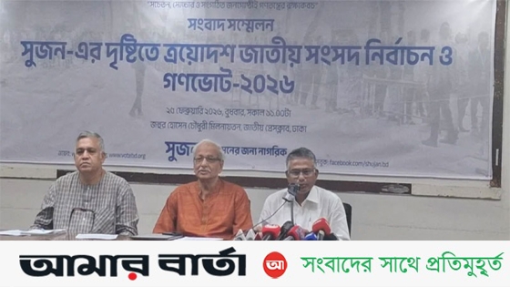 বুধবার জাতীয় প্রেস ক্লাবের জহুর হোসেন চৌধুরী হলে সুজন আয়োজিত ‘সুজন-এর দৃষ্টিতে ত্রয়োদশ জাতীয় সংসদ নির্বাচন ও গণভোট-২০২৬’ শীর্ষক সংবাদ সম্মেলনে এসব তথ্য জানানো হয়। এতে গত ১২ ফেব্রুয়ারি অনুষ্ঠিত জাতীয় নির্বাচন ও গণভোট বিষয়ে সংগঠনের সার্বিক পর্যবেক্ষণ তুলে ধরা হয়।