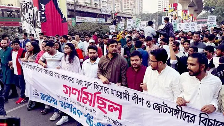 আওয়ামী লীগকে নিষিদ্ধের দাবিতে বিক্ষোভ মিছিল হয়েছে রাজধানীর উত্তরায়।
