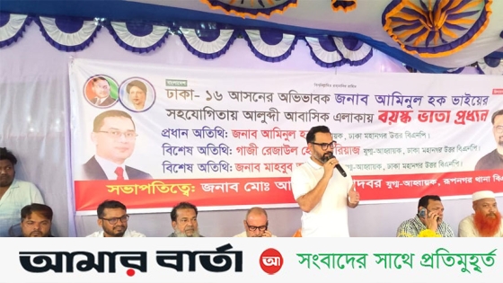অনুষ্ঠানে এলাকার অসহায় ও প্রবীণ নাগরিকদের হাতে বয়স্ক ভাতা তুলে দেন আমিনুল হক।