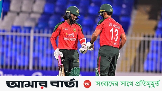 লক্ষ্য তাড়া করতে নেমে শুরুতেই জোড়া উইকেট হারিয়ে বসে বাংলাদেশ। দুই ওপেনার তানজিদ তামিম এবং পারভেজ ইমন ফিরে যান ২ রান করে। এরপর জাকের আলি অনিককে নিয়ে প্রতিরোধ গড়ার চেষ্টা করেন সাইফ হাসান। পরে ব্যক্তিগত ১৮ রান করে সাইফ বিদায় নিলেও লড়তে থাকেন জাকের।