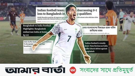 ২২ বছর পর ভারতের বিপক্ষে জয় পেয়েছে বাংলাদেশ ফুটবল দল। গতকাল ঢাকা জাতীয় স্টেডিয়ামে মোরসালিনের একমাত্র গোলে তারা ১-০ ব্যবধানে জয় তুলে নেয়। স্বাভাবিকভাবেই এমন সাফল্যে স্বাগতিক ফুটবলার থেকে সমর্থকদের উচ্ছ্বাস যেন বাঁধ মানছিল না। অন্যদিকে, রাজ্যের হতাশা ছিল ভারতীয় ডাগআউটে। অনেকটা মাথা নিচু করেই মাঠ ছাড়ে খালিদ জামিলের শিষ্যরা। দেশটির গণমাধ্যমেও এমন হারকে ‘লজ্জার’ হিসেবে আখ্যা দেওয়া হয়েছে।