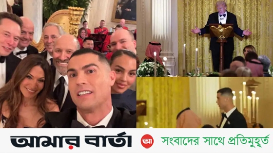 ডিনারে রোনালদোর সঙ্গে ছিলেন তার বাগদত্তা জর্জিনা রদ্রিগেজ। অনুষ্ঠানের একপর্যায়ে টেসলা ও এক্স–এর কর্তা ইলন মাস্কের সঙ্গে সেলফিও তুলেছেন তারা। প্রযুক্তি, ব্যবসা ও ক্রীড়াজগতের বহু তারকার উপস্থিতিতে হোয়াইট হাউসের সেই রাতটা হয়ে ওঠে দৃষ্টি–নন্দন।