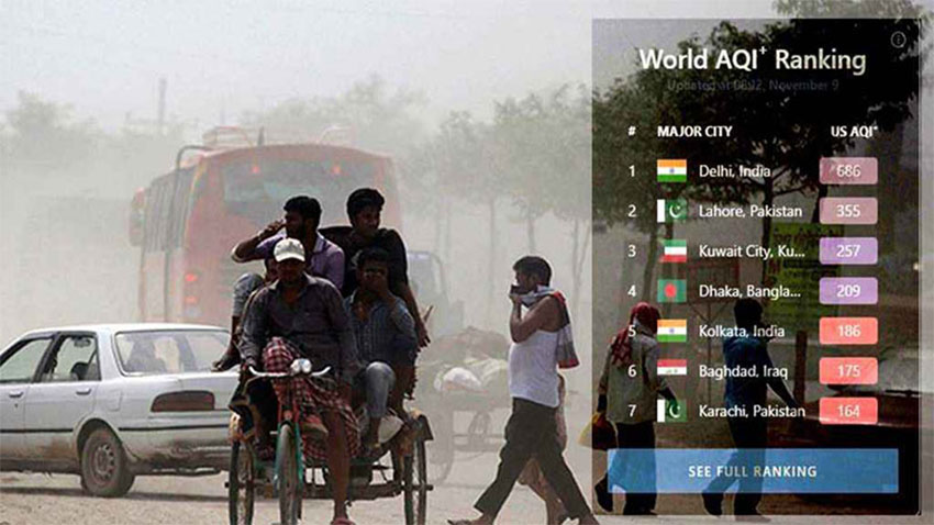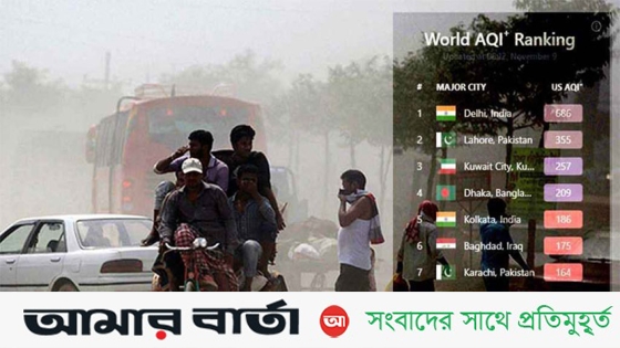 এ ছাড়া স্কোর ৬৮৬ নিয়ে প্রথম স্থানে রয়েছে ভারতের দিল্লি। ২৫৫ স্কোর নিয়ে দ্বিতীয় স্থানে রয়েছে পাকিস্তানের লাহোর এবং ২৫৭ স্কোর নিয়ে তৃতীয় স্থানে রয়েছে কুয়েত সিটি।