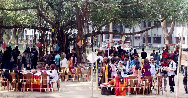 উৎসবস্থলে দেখা যায়, শিক্ষার্থীদের উৎসবমুখর উপস্থিতি। কেউ নিজ হাতে তৈরি পিঠার স্টল সাজাচ্ছেন, কেউবা প্রাঙ্গণের বিভিন্ন কোণে ছবি তুলছেন। কেউ ক্রয়-বিক্রয় নিয়ে ব্যস্ত আর কেউ কেউ কোনায় বসে বই পড়ছেন। স্টলে পুলি, দুধ চিতই, নকশি পিঠা, জামাই পিঠা বাহারি এসব শীতের পিঠার সঙ্গে খিচুড়ি, আলুর চপ, মরিচ ভর্তা ও ডিমের দো-পেঁয়াজ দিয়ে খিচুড়ির আয়োজনও নজর কাড়ে।