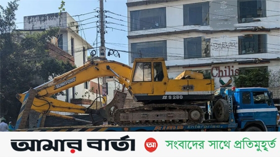 ধানমন্ডি ৩২-এর দিকে নিয়ে যাওয়া হচ্ছে দুটি বুলডোজার