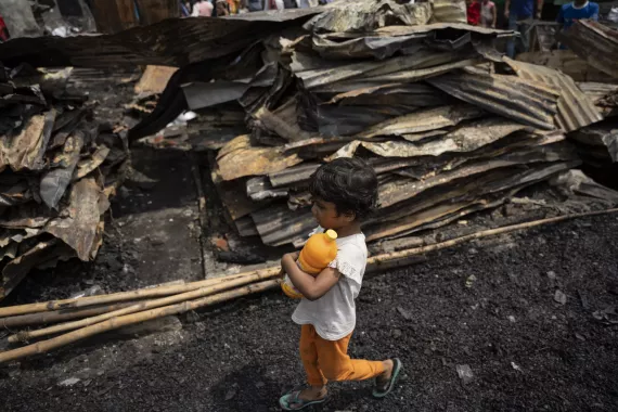 ভয়াবহ অগ্নিকাণ্ডে সব হারিয়ে কড়াইল বস্তির হাজারো মানুষ এখন চরম মানবিক বিপর্যয়ের মুখে।