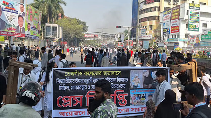 শিক্ষার্থীর মৃত্যুর ঘটনায় তেজগাঁও কলেজের শিক্ষার্থীদের ফার্মগেট অবরোধ
