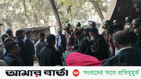 শনিবার (২০ ডিসেম্বর) সকালে জাতীয় হৃদরোগ ইনস্টিটিউটের হিমঘর থেকে তার মরদেহ সোহরাওয়ার্দী মেডিকেল কলেজ হাসপাতালে নেওয়া হয়। এসময় আইন শৃঙ্খলা বাহিনীকে কঠোর নিরাপত্তা দিতে দেখা গেছে।