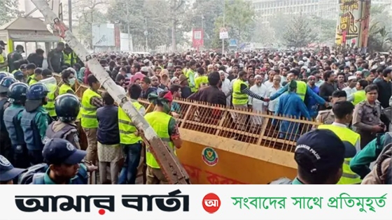 শনিবার (২০ ডিসেম্বর) বিকেল সাড়ে ৩টার দিকে ওসমান হাদির মরদেহ দাফন করা হয়। এরপরই শাহবাগে জনস্রোত নামে। তা ঠেকাতে শাহবাগ থানার সামনে পুলিশ ব্যারিকেড দেয়।