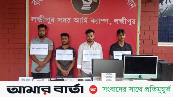 লক্ষ্মীপুরে বিকাশ ও নগদ প্রতারক চক্রের ৪ সদস্যকে আটক করেছে সেনাবাহিনী।