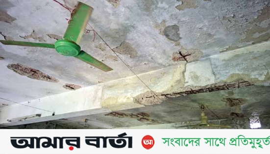 শুধু ছাদ নয়, দেয়ালের বিভিন্ন জায়গায় ফাটল ধরে আছে। আবার কিছু কিছু জায়গা খসেও পড়ছে। প্রায়ই পাঠদানের সময় ছাদ ভেঙে পড়ছে। এতে প্রতিদিনই আতঙ্কের মধ্যে শিক্ষার্থীরা লেখাপড়া করছে।
