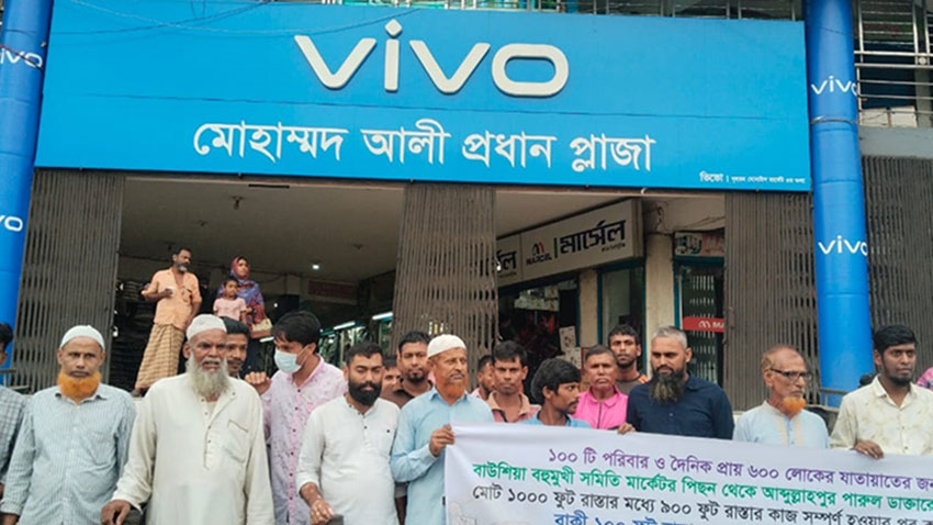 গজারিয়ায় চলাচল রাস্তার দাবিতে মানববন্ধন-বিক্ষোভ মিছিল