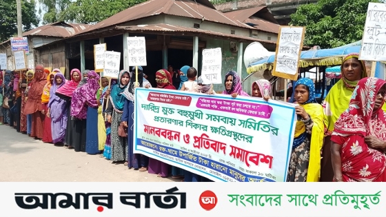 নিজেদের গচ্ছিত অর্থ ফেরত পেতে কুড়িগ্রামের চিলমারীতে বেসরকারি দারিদ্র্যমুক্ত বহুমুখী সমবায় সমিতির বিরুদ্ধে বিক্ষোভ ও মানববন্ধন করেছেন সহস্রাধিক প্রতারিত ভুক্তভোগী।