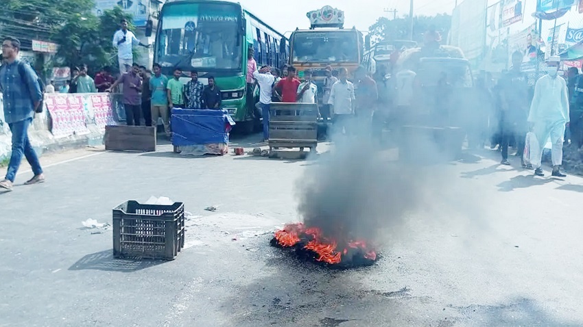বাসচাপায় হেফাজতে ইসলামের কেন্দ্রীয় নির্বাহী নেতা নিহতের ঘটনায় চট্টগ্রাম-রাঙামাটি-খাগড়াছড়ি মহাসড়ক অবরোধ করে বিক্ষোভ করছেন দলটির নেতাকর্মীরা। এতে ভোগান্তিতে পড়েছেন যাত্রী সাধারণ।