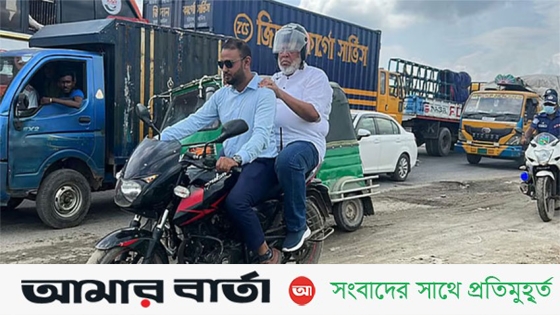 ঢাকা-সিলেট মহাসড়কের ব্রাহ্মণবাড়িয়ার অংশ পরিদর্শনে এসে যানজটে আটকা পড়া সড়ক ও সেতু মন্ত্রণালয়ের উপদেষ্টা ফাওজুল কবির খান অবশেষে মোটরসাইকেলে চড়ে এলেন।