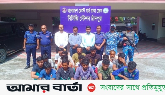 চাঁদপুরে মেঘনা নদীর মোহনায় অবৈধ কারেন্ট জাল ও ২ টি বোটসহ ১৭ জন জেলেকে আটক করেছে কোস্ট গার্ড।