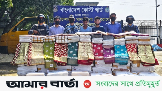 নারায়ণগঞ্জের ফতুল্লায় শুল্ক কর ফাঁকি দিয়ে আসা প্রায় সাড়ে ৮৫ লক্ষ টাকা মূল্যের বিপুল পরিমাণ ভারতীয় শাড়িসহ ২ জন পাচারকারীকে আটক করেছে কোস্ট গার্ড।