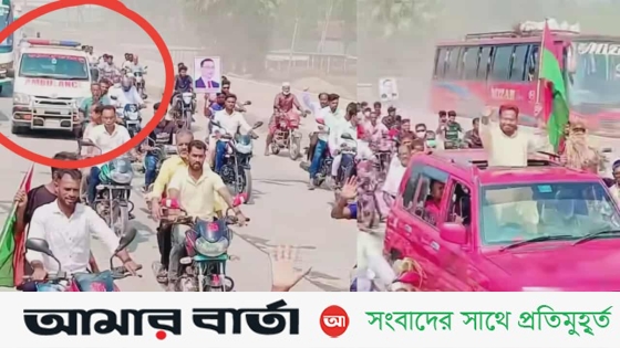 রায়গঞ্জে অ্যাম্বুলেন্স আটকে রেখে বিএনপি নেতার মোটর শোভাযাত্রা